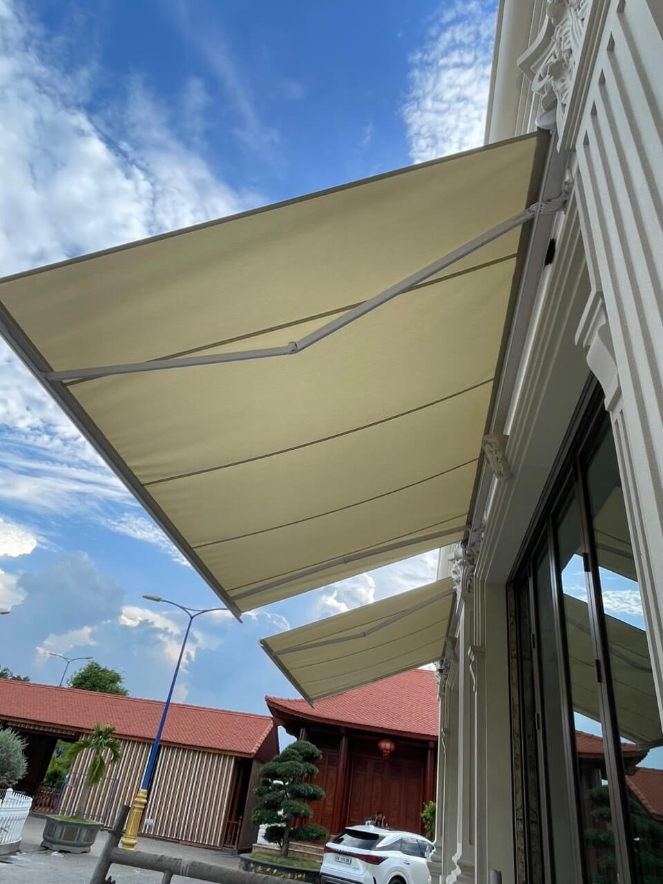 Sử dụng bằng quay tay cầm hoặc remote để điều chỉnh không gian dưới mái che. Mái hiên di động sử dụng với nhiều chất liệu và có thể đặt các bảng quảng cáo cũng thích hợp với các không gian cần tính di động như quán hàng, nhà để xe…