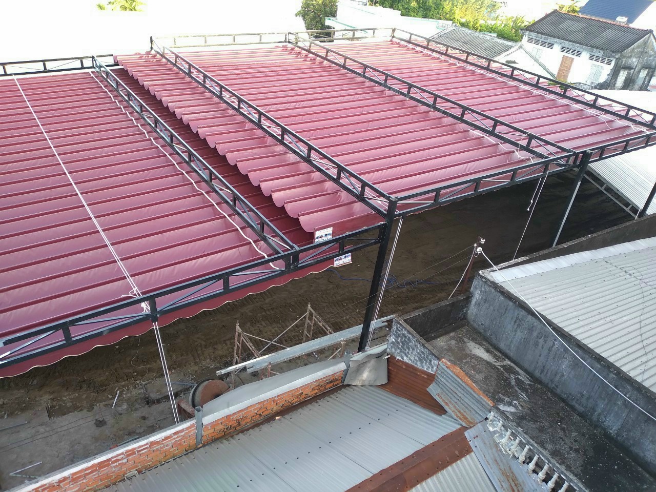 Mẫu mái xếp nhà hàng màu đỏ đô