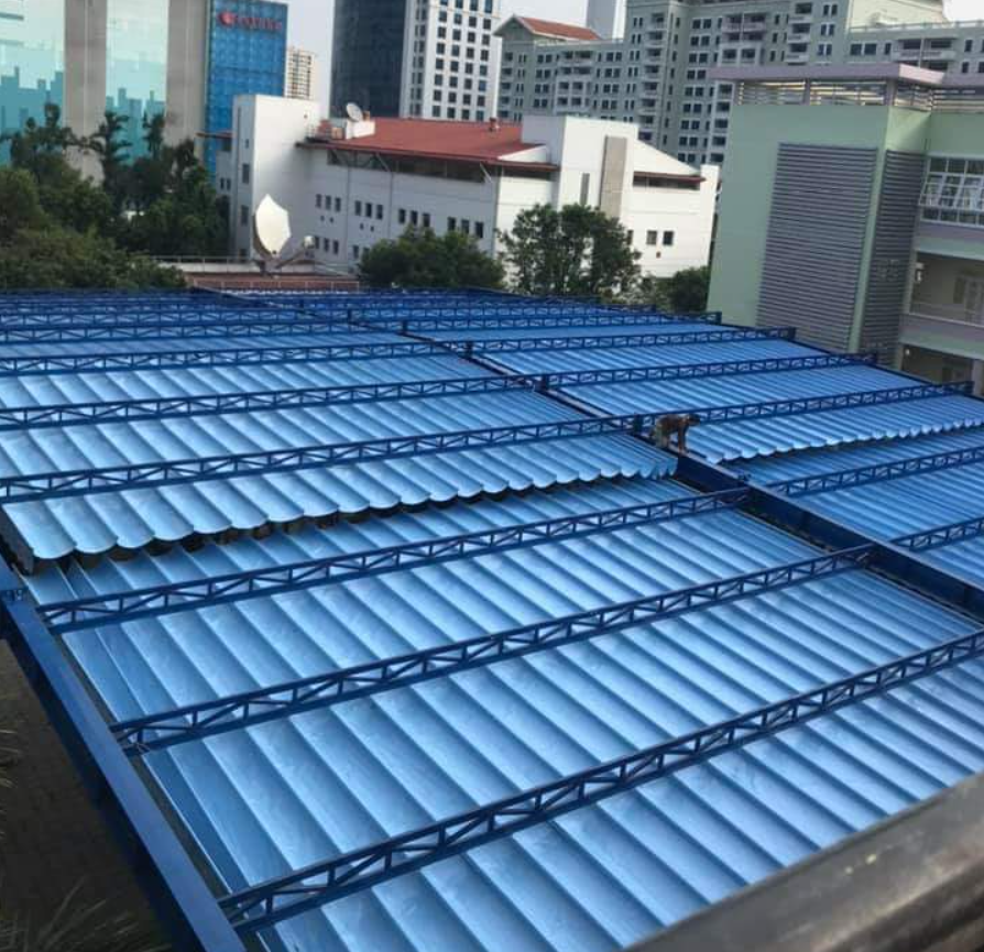– Mái xếp nhà xe Bình Thạnh của Thịnh Phát sử dụng hệ cơ cấu mới, hiện đại, khung thép cứng chống chịu sức nặng rất tốt.