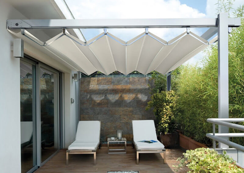 Mẫu mái xếp bạt kéo đẹp cho sân thượng